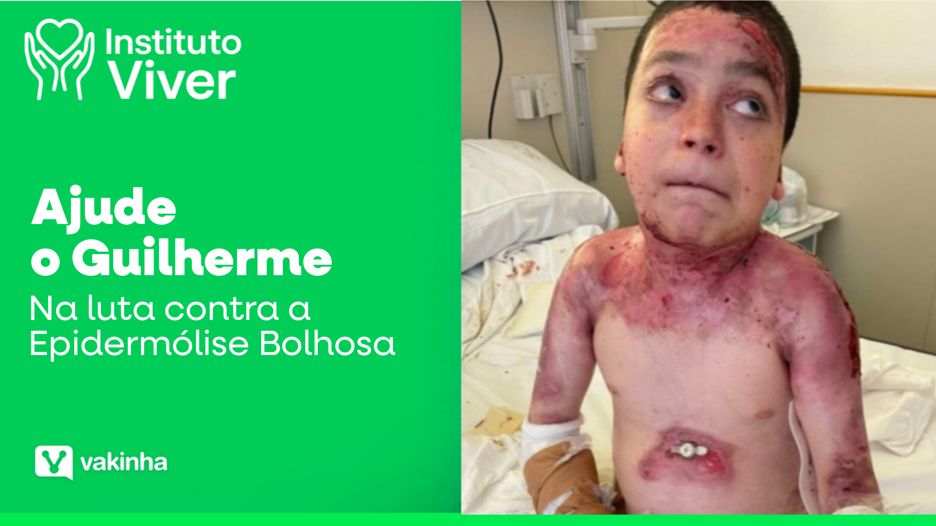 O Guilherme sofre de Epidermólise Bolhosa, uma doença rara, cruel e dolorosa, que faz com que a pele dele se machuque, se queime e se solte com qualquer toque. Só quem vê de perto entende a dor de uma criança que já perdeu as mãozinhas, que não consegue comer, que só se alimenta por sonda e que sente dores todos os dias.