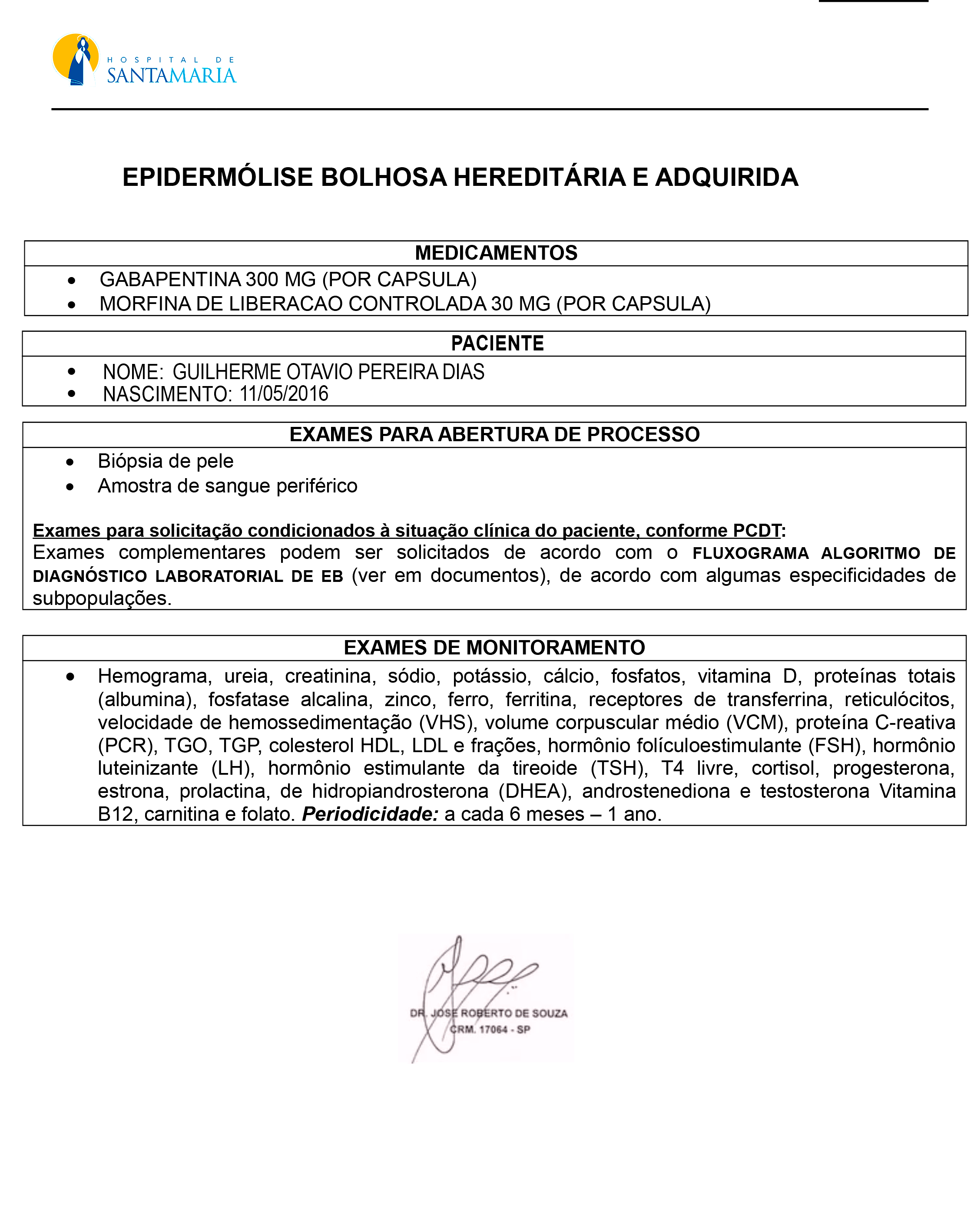 Estamos sendo acompanhados no Hospital das Clínicas, onde recebo todo apoio possível dos médicos, mas infelizmente os remédios e curativos especiais que meu filho precisa para sobreviver não são fornecidos pelo SUS e custam muito caro.